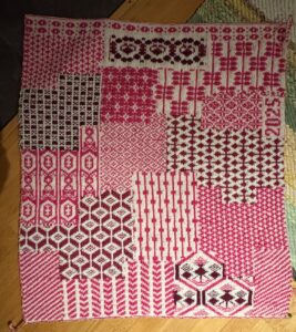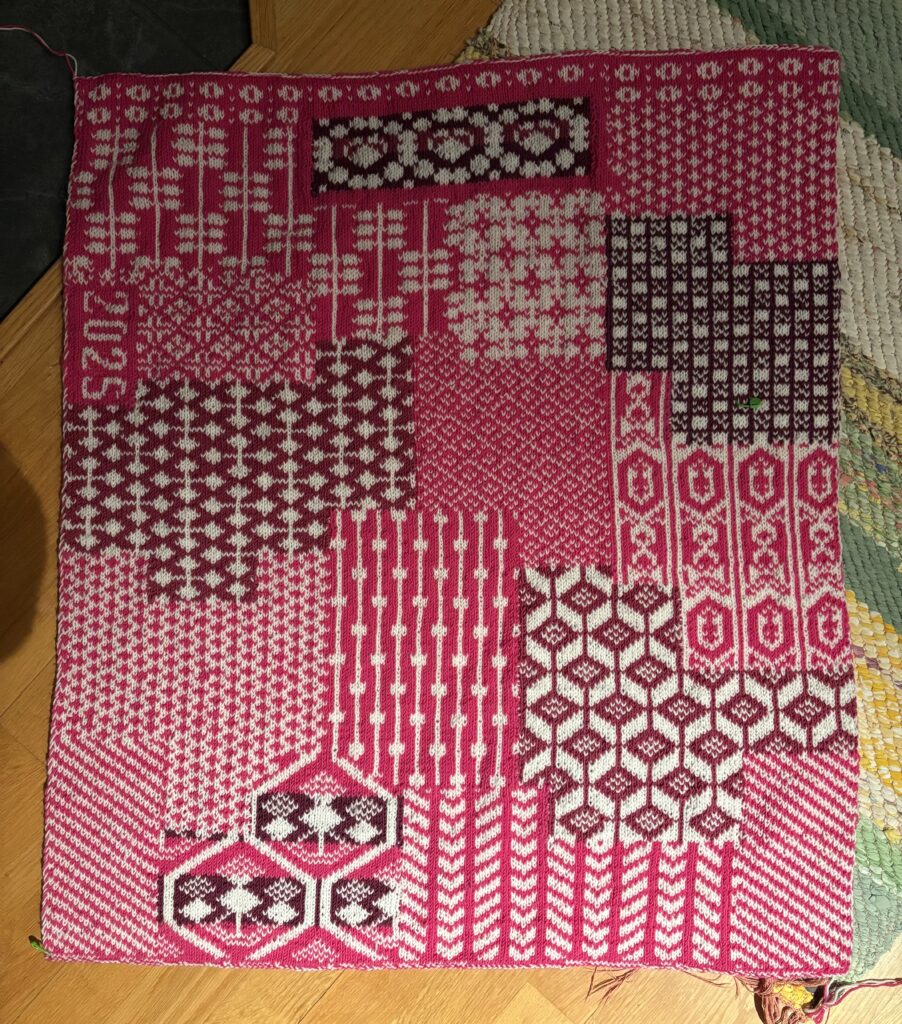 Babyfilt komponerad och dubbelstickad av Harriet Axelsson 2025